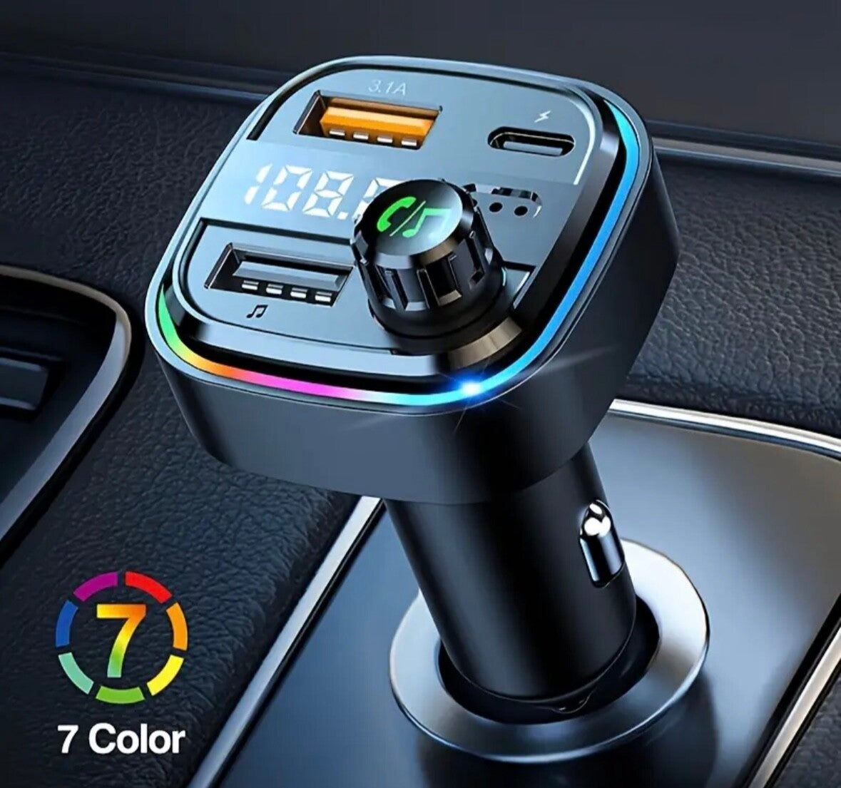 Autoladegerät, schnelles Handy-Laden mit 3, 1A Schnellladung, zwei USB, 1 Typ-C, Bluetooth-Verbindung für Telefonate 5.0 FM Sender, Dual Ports