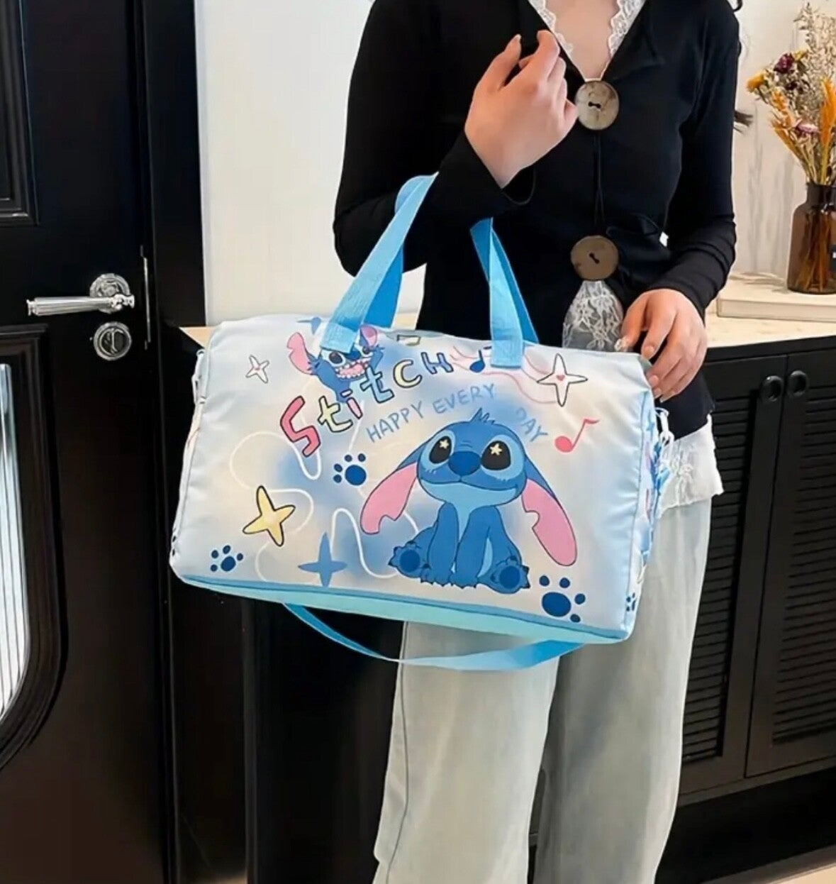 Disney Stitch Damen Reisetasche - geräumig, Reißverschluss, mit Schulter- und Crossbody-Gurten, geeignet für Fitnessstudio, Reisen, Schwimmen und Camping,