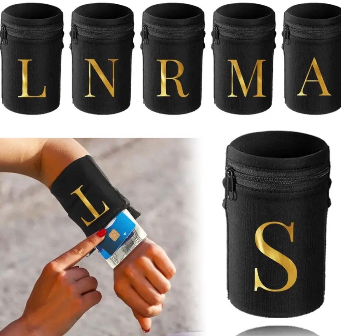 Leichte Schwarze Nylon-Handgelenk-Geldbörse mit Buntem Buchstabendesign - Sichere Handy-Tasche für den Arm & Mini-Münzbörse für Laufen, Sport & Reisen, Nur Hand- oder Chemische Reinigung, Handy-Geldbörse mit allen Buchstaben erhältlich